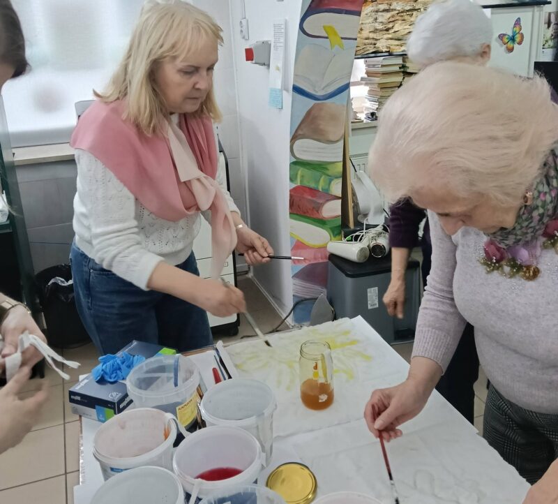 Po inspirującej rozmowie odbyły się warsztaty, podczas których uczestniczki – pod czujnym okiem pani Marty – wykonały własne, barwne prace. W bibliotece unosił się zapach wosku, a twórcza atmosfera sprzyjała zarówno nauce, jak i swobodnej wymianie doświadczeń.